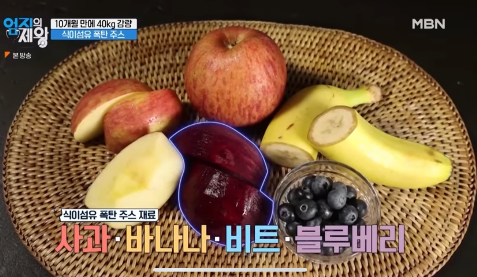 비트 100g 블루베리 50g 바나나 반쪽 60-70g 사과반쪽 100g 정도 대충 갈아서 물 충분히 넣고 아침마다 마셔주고 있답니다:)